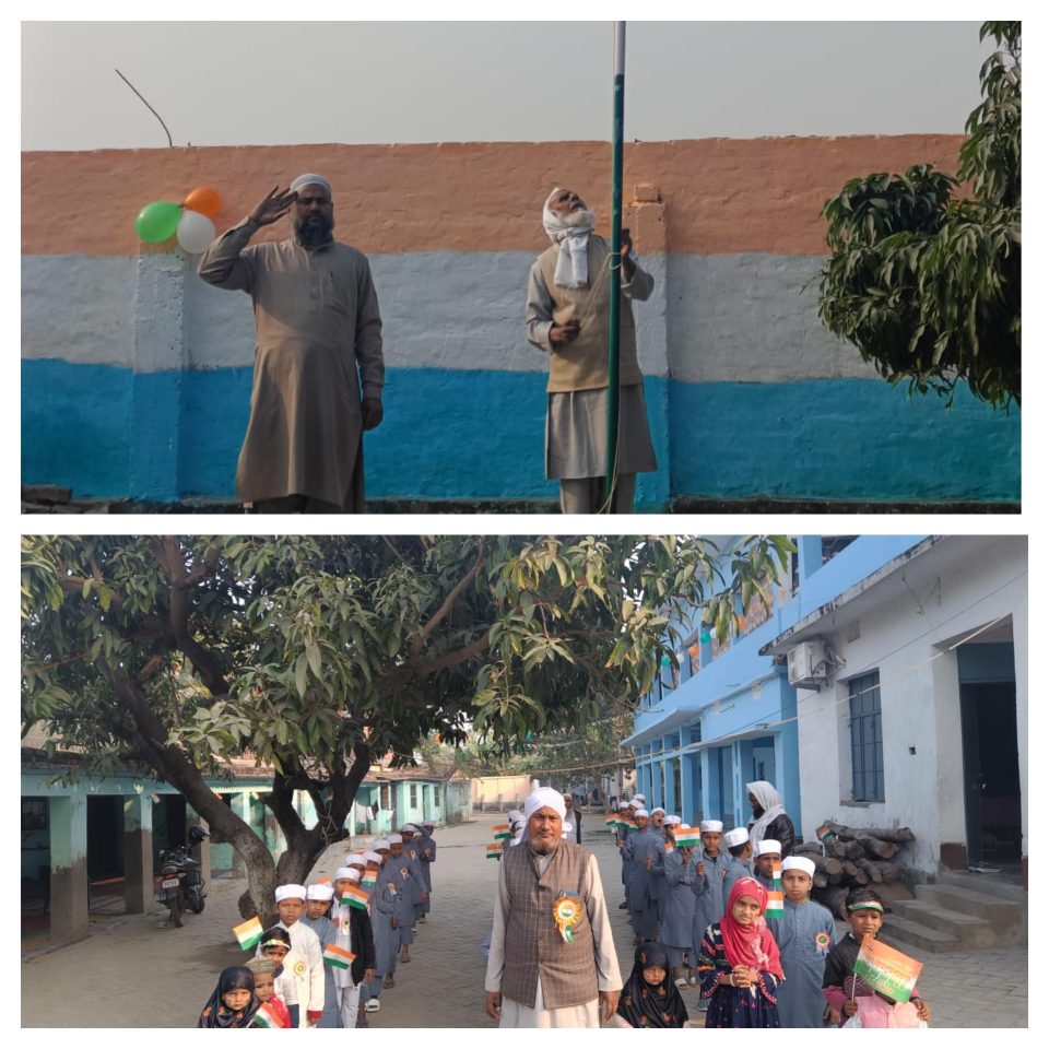 حاجی پور ویشالی 27/جنوری (پریس ریلیز) یوم جمہوریہ کے موقع پر ہندوستان کا ہر باشندہ پورے تزک و احتشام کے ساتھ جشن مناتا ہے اس موقع پر ضلع ویشالی کا مشہور و معروف ادارہ معھد العلوم الاسلامیہ چک چمیلی میں پرچم کشائی کا اہتمام کیا گیا ،اس خاص موقع پر چک چمیلی اور اس کے اطراف کے دردمند عوام وخواص کا ایک جم غفیر تھا۔ ادارہ کے فعال و متحرک ناظم قاری افروز عالم طیبی نے جھنڈا پھرایا، پرچم کشائی کے بعد بچوں نے سارے جہاں سے اچھا ہندوستاں ہمارا کا نغمہ گاکر آنے والے تمام مہمانوں کے دل و دماغ کو حب الوطنی کے جذبہ سے سرشار کردیا۔اس کے علاوہ بچوں نے مختلف انداز کے پروگرام کو مختلف انداز سے پیش کیا، واضح ہوکہ یہ ادارہ برسوں سے علم کے متلاشی طلبہ و طالبات کو دینی و عصری علوم سے آراستہ کرتے آرہا ہے یہاں سے تعلیم حاصل کرکے بچے مختلف میدان میں کارہایہ نمایاں کام انجام دے رہے ہیں ، اس ادارہ کے روح رواں ، بانی و سرپرست حضرت مولانا مفتی محمد ثناء الہدیٰ قاسمی نائب ناظم امارت شرعیہ بہار اڈیشہ و جھارکھنڈ ہیں۔