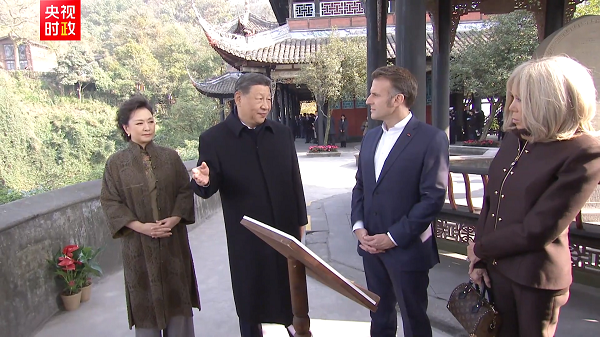 و چینی صدر شی جن پھنگ نے چین کے صوبہ سی چھوان کے شہر چھنگ دو میں ڈو جیانگ یان میں فرانسیسی صدر ایمانوئل میکرون کے ساتھ دوستانہ گفتگو کی۔