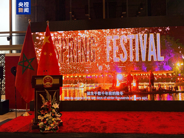مراکش کے دارالحکومت رباط میں واقع محمد وی تھیٹر میں مراکش میں چینی سفارت خانے کی طرف سے جشن بہار کا استقبالیہ اور "ہیپی چائنیز نیو ایئر، چارمنگ سلک روڈ” کے عنوان سے  ایک  ثقافتی پرفارمنس کا انعقاد کیا گیا ۔